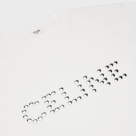 SAVE 70%White Loose Fit T-shirt with Studs