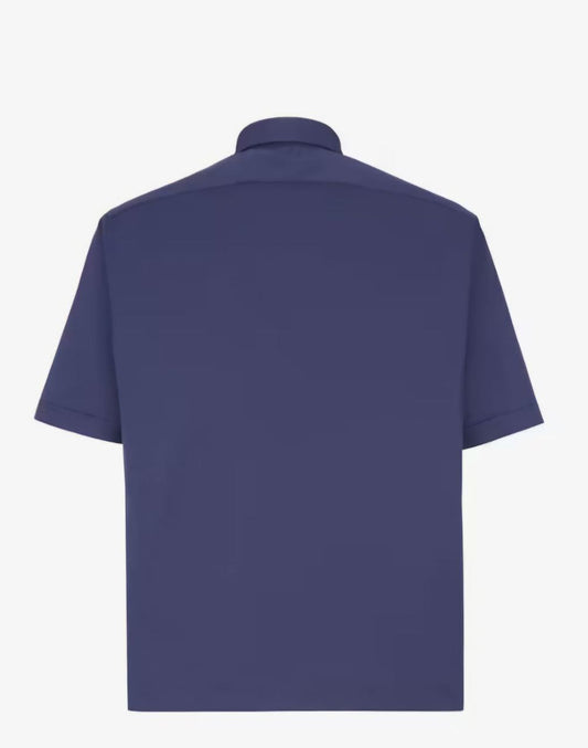 SAVE 53%Pocket Zip-up Blue Cotton Shirt