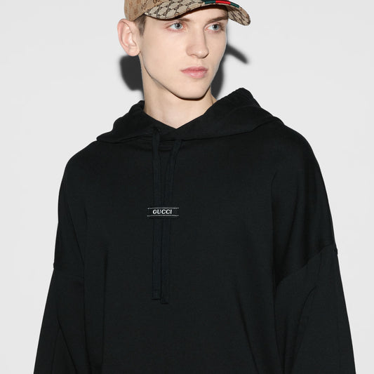 SAVE 63%Logo Fleece Black Cotton Hoodie