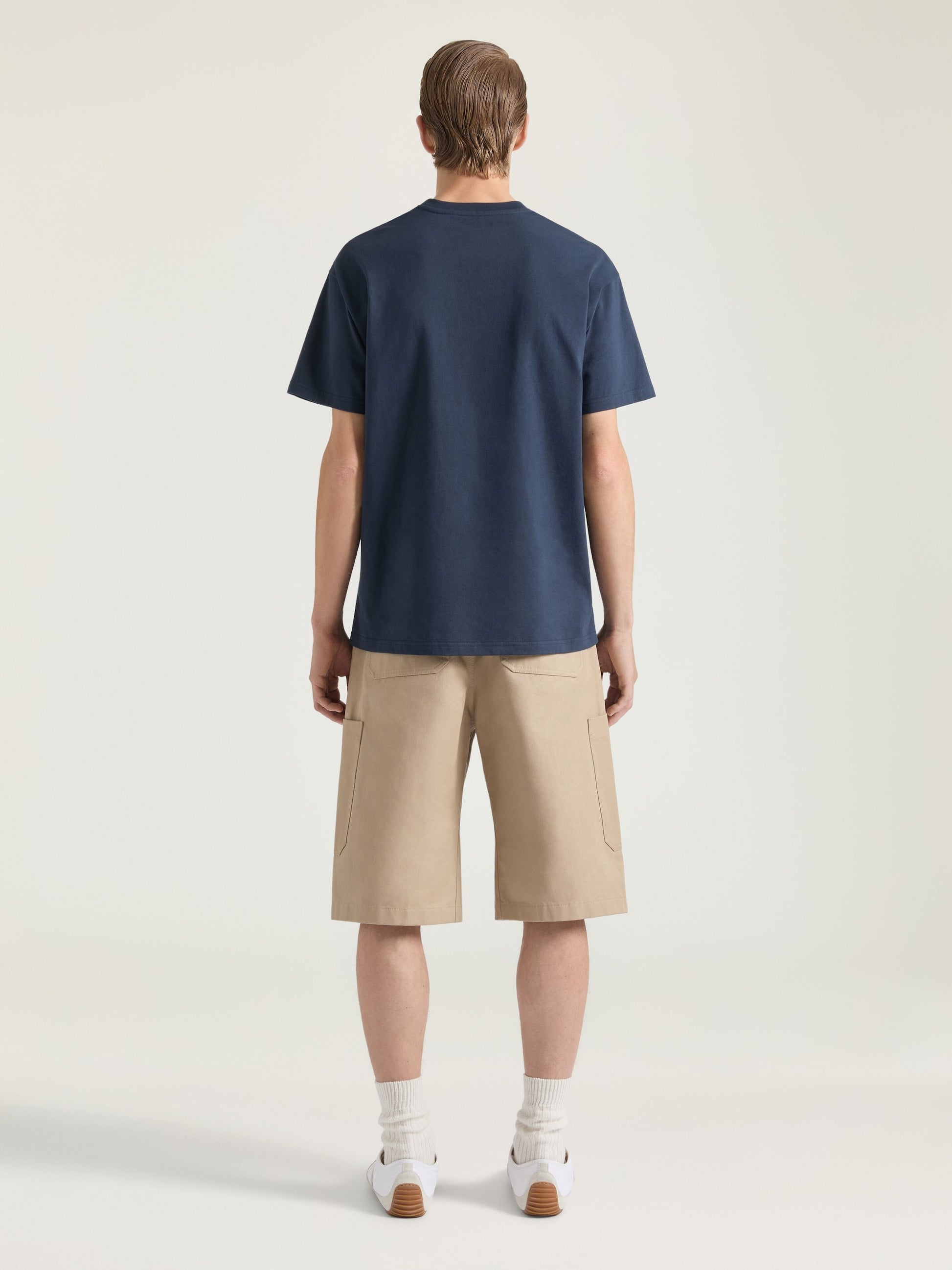 Deep Blue Relaxed Fit Oblique Motif Cotton T-shirt