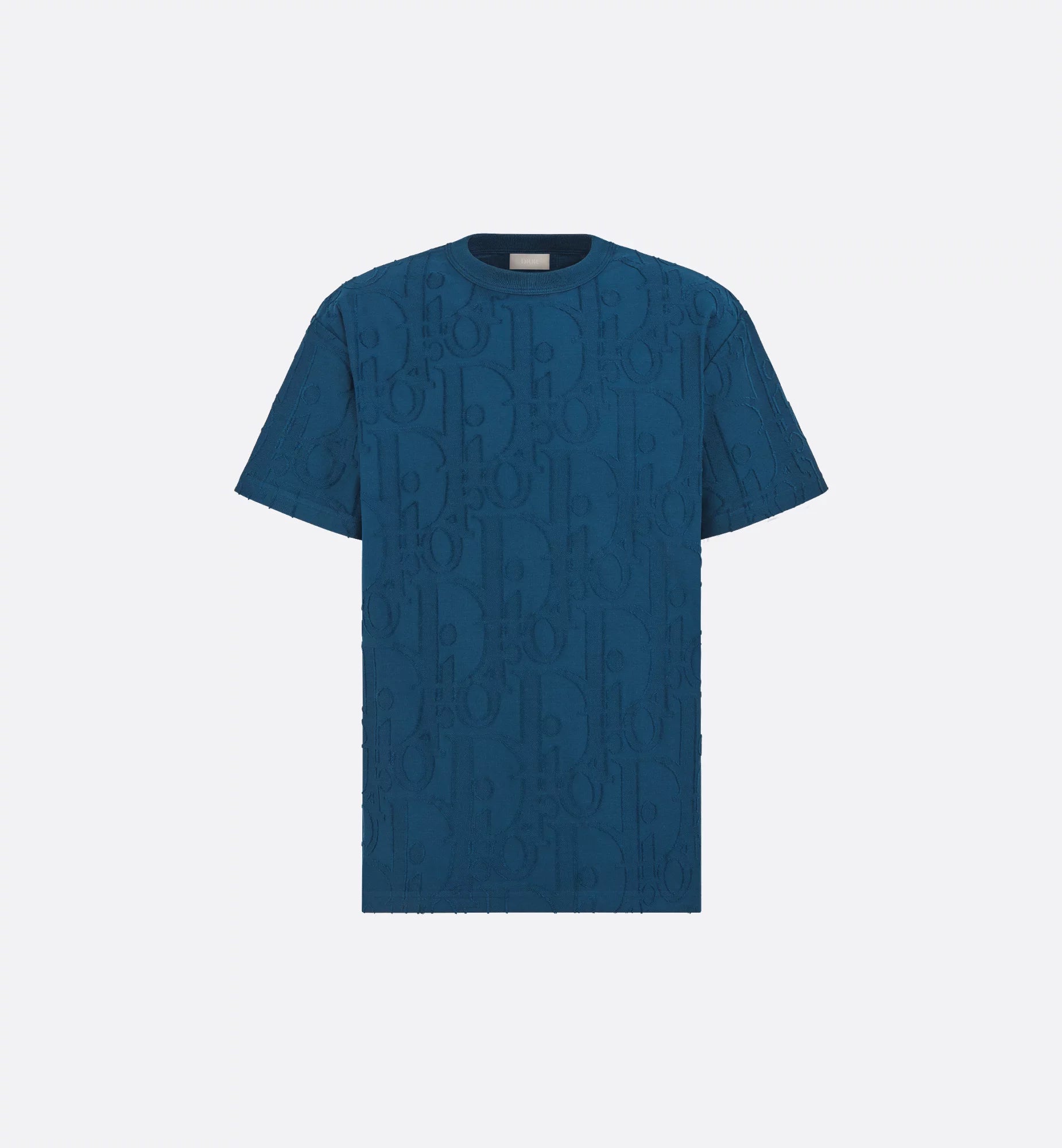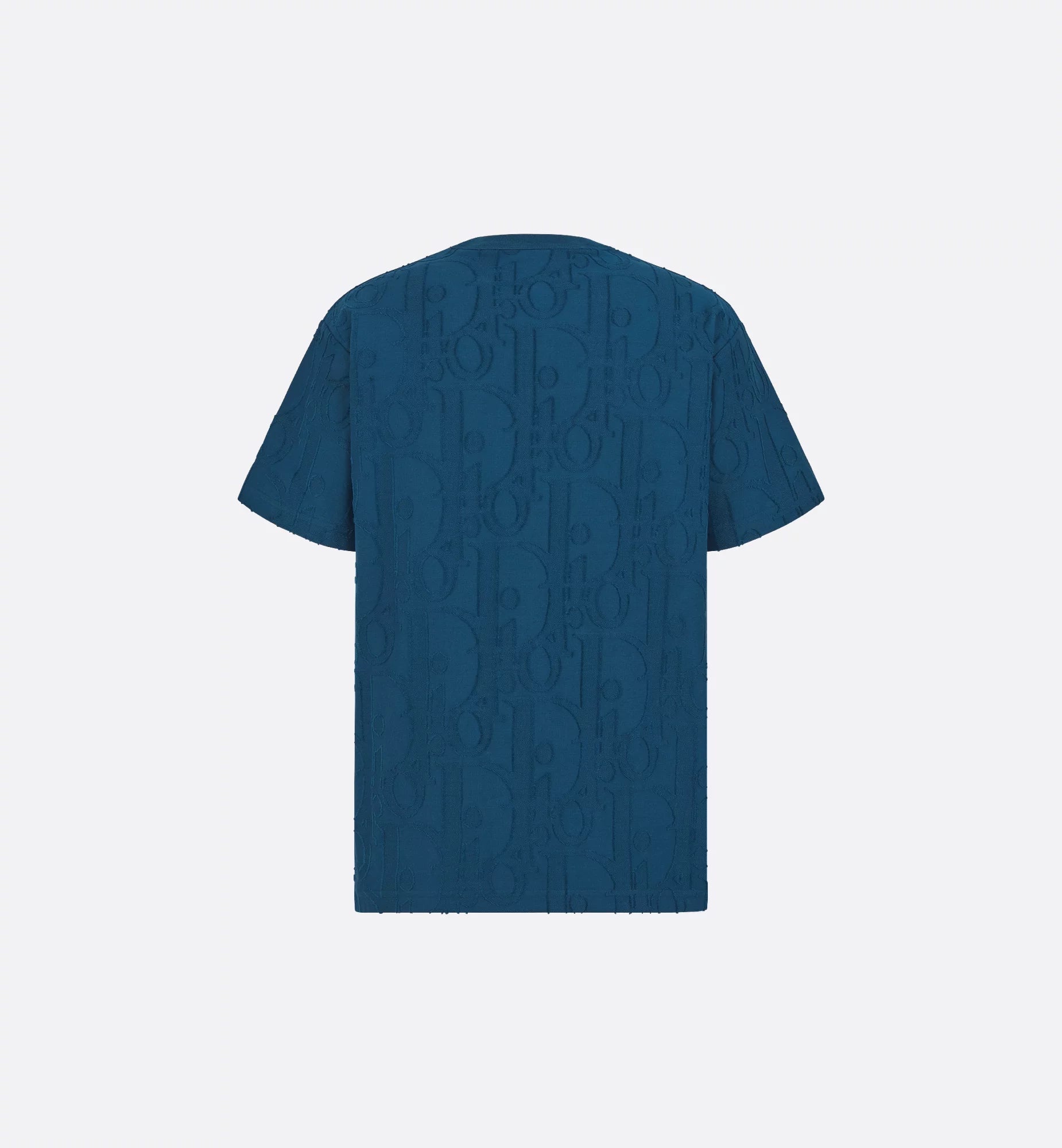 Deep Blue Relaxed Fit Oblique Motif Cotton T-shirt